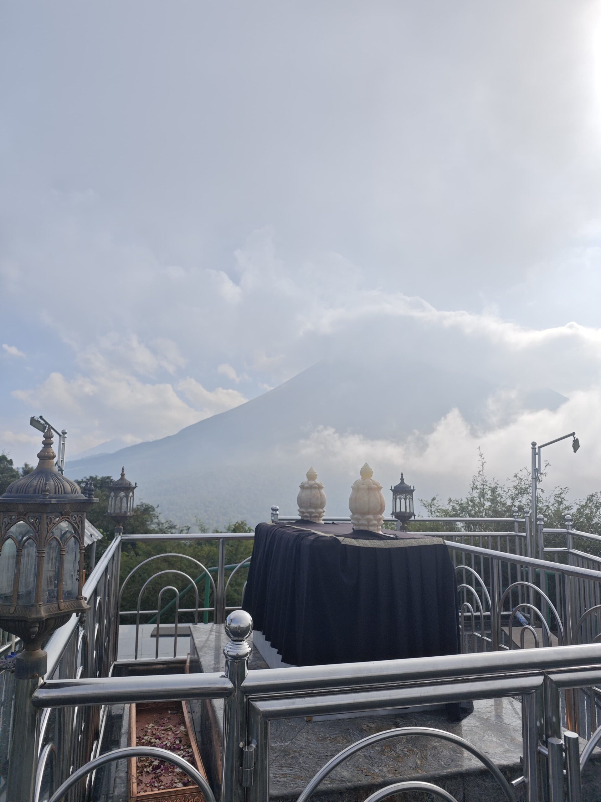 Sesampainya di puncak Bukit Turgo, pengunjung akan melihat bangunan makam berwarna merah muda yang khas, dengan lantai hitam yang memberikan kesan sakral dan megah. Di bagian utara makam, terdapat silsilah keturunan Syekh Jumadil Qubro yang tercatat sebagai generasi keenam dari garis keturunan Nabi Muhammad SAW melalui Husein.